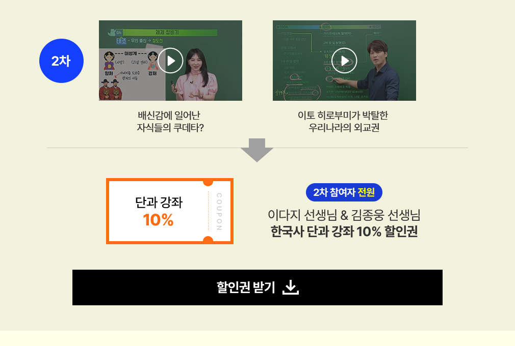 - 2Â÷ ¿µ»ó ½Ãû ¿Ï·á ÈÄ, Àü¿ø ´Ü°ú °Á 10% ÇÒÀ뱂 ÄíÆùÀº Áï½Ã ¹ß±Þ °¡´ÉÇÕ´Ï´Ù. ÄíÆùÀº ÀÌ´ÙÁö, ±èÁ¾¿õ ¼±»ý´Ô Çѱ¹»ç ´Ü°ú °Á¿¡¸¸ Àû¿ë °¡´ÉÇÕ´Ï´Ù.
