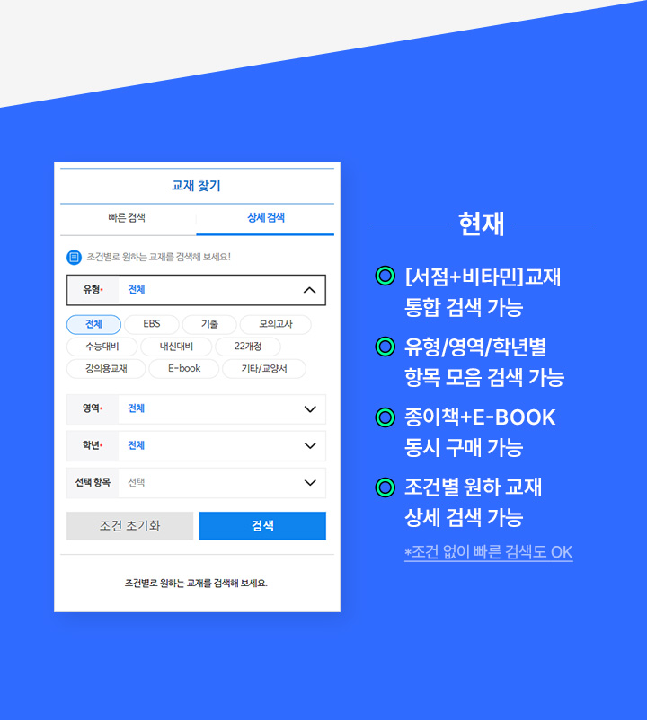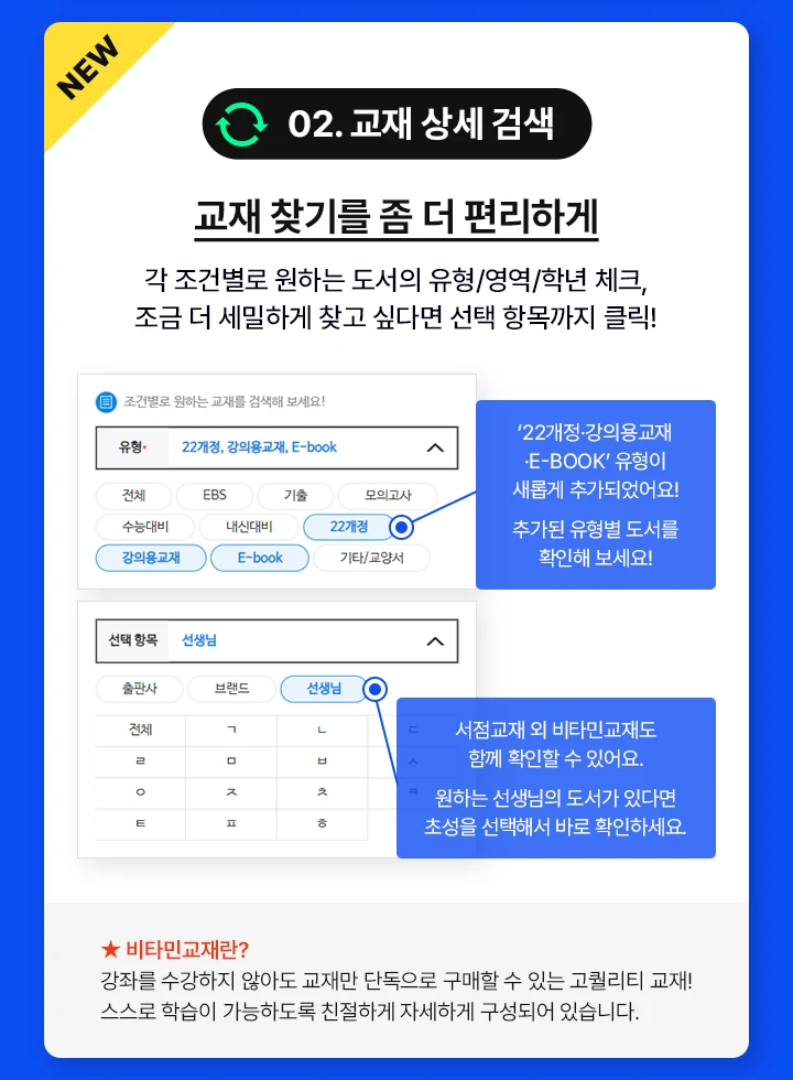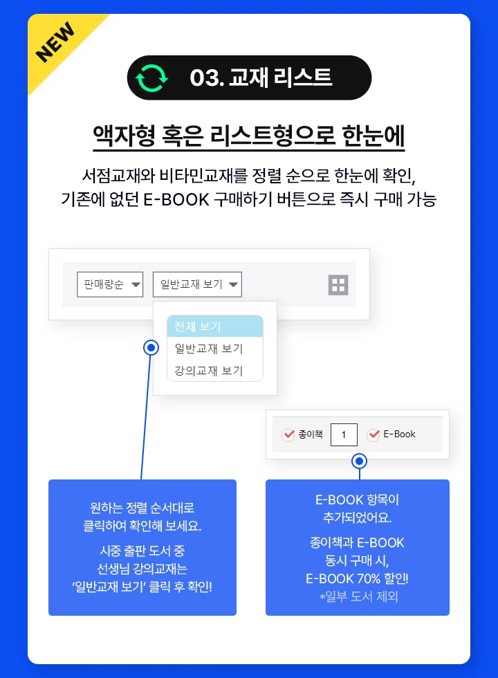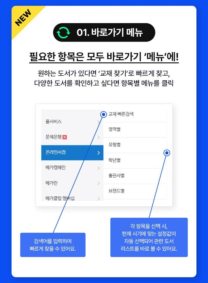 리뉴얼된 온라인서점 교재 찾기 페이지를 이용하고